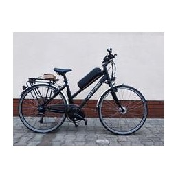 Pojazd elektryczny z konwersji - zbudowany na NOWYM osprzęcie wspomagania elektrycznego dobrej jakości: silnik Bafang, licznik oraz sterownik nowe, oraz nowa bateria! Osadzone na używanej ramie rowerowej marki Victoria St. Moritz.