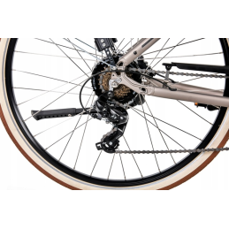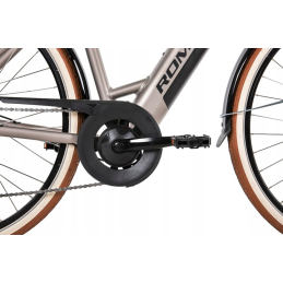 Rower ma ramę aluminiową z miejscem na zintegrowaną baterię i koła o rozmiarze 28 cali z grubymi oponami w rozmiarze. Poza tym ma 7 biegowy napęd Shimano z tylną przerzutką Shimano Tourney sterowaną manetką Shimano Revoshift RS-35 7 speed a także precyzyjnie działające hamulce tarczowe hydrauliczne.